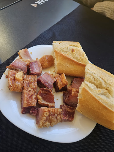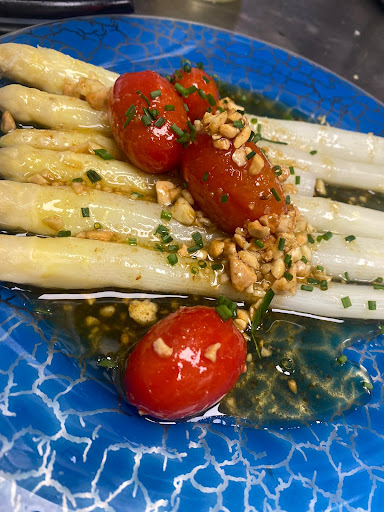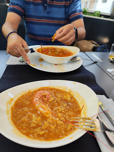 Acabamos de comer hoy domingo. Nos avisan al reservar q solo “menú del fin de semana”. Perfecto. Vamos un patrimonio y niños de 6 y 10 años. No hay más posibilidad q menú 31€. Mis hijos comen de todo y bastante, pero pedirles un menú de adulto a cada uno es excesivo. 3 menús. 2 arroces con pulpo, gambón y bogavante. Pasado (ni un pero siendo de menú) pero rico de sabor. Yo pido potxas. Muy ricas. Algo viudas, pero buen producto y punto perfecto. Segundos: un guiso con bacalao con kokotxas rico, magret abusando de un culis de frutos rojos, pero bueno y “entrecot”. Las comillas son porque no era lomo bajo de vaca o ternera. Era otro corte. Cuando lo traen lo hablamos y se lo decimos al camarero. Carne durísima y obvio que no tenía la forma del lomo. Igual sería un jarrete, la verdad es que no lo identificaba. Pero eso no era entrecot. Nos lo cambiaron sin pestañear, ni pedirlo (ya los dábamos por engañados) y trajeron otro igual pero más fino. Pagamos y… 31x3 del menú, más un refresco, una caña (la botella de agua lo incluyeron en el menú) y… 3€ de “servicio extra” 98,80€. Servicio??? han traído 3 panes, 3 croquetas (muy ricas) de aperitivo y salvo un plato (para servir arroz a uno de los hijos), ni una cuchara de más han tenido que fregar. Postres (torrija, tarta de zanahoria y crema catalana) dos de tres muy bien y la crema catalana líquida y no han conseguido la costra de caramelo, pero tenía un pase. En definitiva: te vas descontento por el engaño de la carne (q ya la podían haber guisado y habían quedado bandera) y el robo a mano armada de 3€ de servicio q no han puesto. Lo q más me fastidia es q me engañen, porque en cocina o sala se puede tener un mal día o una baja, o lo que sea… Pero no me digas q me traes un entrecot y me pongas un corte de guisar con forma parecida...