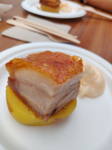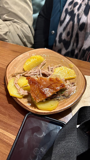 El jamón asado en horno de leña es, sin duda, el alma del lugar. Su aroma inconfundible te envuelve en cuanto entras por la puerta, y cuando llega a la mesa... simplemente no hay palabras. Cocinado a fuego lento, con ese toque ahumado tan característico del horno de leña, se deshace en la boca con cada bocado. La corteza crujiente y dorada contrasta a la perfección con la jugosidad de la carne, y convierte cada porción en una delicia inolvidable.