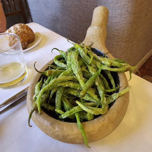 Read moreAcabamos de comer en este magnífico restaurante de Tudela. Está situado en pleno centro a menos de 60 metros de la Plaza de los Fueros, el verdadero centro de la ciudad. A pesar de estar a 1 de Junio el calor es insoportable y renunciamos a la acogedora terraza y preferimos el pequeño comedor que tienen en la primera planta, con una temperatura agradable. En la terraza y en la barra de la planta baja lo normal es el picoteo, pero en el comedor todo algo más formal. Hay dos opciones: carta y menú y curiosamente el menú es más caro. Los 45 euros en un jueves cualquiera nos asusustaron un poco, pero era un día de celebración (mi pareja y yo cumplimos mañana 18 años) y nos lanzamos y realmente no nos arrepentimos. En el menú entran todos los entrantes y eran exquisitos: jamón con pan y tomate, gambas de Huelva, tosta de foie y manzana y cogollos con atún. Todo soberbio. De plato principal yo tomé un solomillo deshuesado sublime y mi pareja un rape que calificó como exquisito. Excelente vino incluido en el precio en raciones generosas y unos postres remarcarbles. Margaret tomó una torrija magnífica y yo una cuajada con nada que reprochar (aunque esperaba algo más, igual ingenuamente).