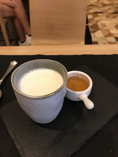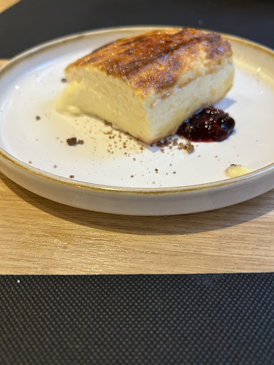 Read moreEn una pequeña calle de Tudela, se encuentra este acogedor y encantador restaurante con un servicio impecable y unas viandas insuperables con unos contrastes de sabores y texturas únicos, y a mi parecer, insuperables. Comenzamos por un carpaccio de gambas con lima, cilantro y jengibre y aderezado con el exquisito aceite de arbequina de la zona, cuyo equilibrio de sabores lo ha convertido en el mejor que he tomado hasta el momento, seguimos con una flor de alcachofa con velo de papada que era, sencillamente exquisita; la encantadora metre , Romero, nos recomendó unas orejas con Curri, a baja temperatura, (que no nos suelen gustar) y tuvo la deferencia de ponernos media nación para probar y de verdad, qué cosa más rica!: Tierno y crujiente rompían en un sabor delicioso. De segundo tomamos manitas y rabo de vaca y no hay palabras para describir la explosión de sabores y el equilibrio alcanzado en ambos platos para respetar y venerar el producto. Una experiencia gastronómica inolvidable y muy recomendable que concluimos con la mejor tarta de queso que...