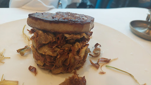 Read moreEsta crítica se plantea desde la relación calidad precio del restaurante, no voy a hacer explícito que en ese establecimiento se coma mal; pero, al menos lo que yo tuve la oportunidad de probar, no estaba a la altura del precio que tenía. Asistimos dos personas al restaurante y pedimos uno de los menús que se sirven a mesa completa, en este caso un menú de verduras cuyo coste es de 59€ por persona. Dicho menú lo conforman 7 pasos: una crema de calabaza, borraja con patatas a la importancia, un guiso de trigo, un pisto, una crema de foie con alcachofas, unas pochas con cocochas y sepia y, como postre, una torrija. Si bien toda la comida era disfrutable, se trata de un menú extraordinariamente plano y tradicional; nada a la altura de a lo que se aspira en un local que rezuma un intento de alto standing, pero se queda en mera pretenciosidad. Los elementos que tratan de hacer leves cambios en las formas tradicionales de las preparaciones están mal introducidos o, simplemente, no tienen sentido. A lo largo del menú, todos los platos eran platos de cuchara (cuando digo todos, me refiero a que durante toda la cena jamás se tuvo que hacer uso de un tenedor o un cuchillo): esencialmente parecía un menú sacado de la mente de alguien que hubiera tenido que diseñar la alimentación de un geriátrico. Por otro lado, los elementos que buscaban un contraste en la textura de un puré o una crema a través de elementos crujientes estaban mal ejecutados (sirviendo una lámina de algún tipo de cereal chicloso en un guiso de trigo extraordinariamente pasado de cocción o unas alcachofas pasadas de fritura que acababan resultando incomestibles por su agriura). Paralelamente, para ser un menú de siete pasos, las raciones eran inexplicablemente abundantes y servir como último paso previo al postre un gran plato de pochas no guarda ningún tipo de lógica en lo que a perseguir el bienestar del comensal respecta. A esto hay que sumar que el jefe de sala, era una persona que no estaba a la altura de sus funciones, desarrollando un trato con el comensal cuyos límites sobrepasaban en ocasiones los del buen gusto. ¿Repetiría la experiencia? Es posible, porque como digo la comida era adecuada, pero para un menú de un máximo de 15 o 20 euros...