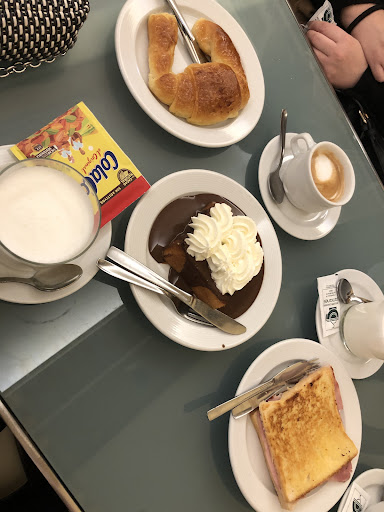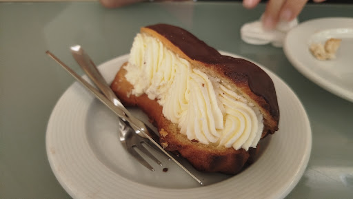 Pastisseria amb més d'un local a Tudela. Espai és rústic i antic, però en el bon sentit. És una cafeteria-pastisseria on pots anar a comprar postres, tots ells criden a la vista; però també pots prendre un cafè o esmorzar, dolç o salat. Tenen unes quantes taules i servei. Una barra amb màquina de cafè i un gran mostrador on hi ha exposats la gran quantitat de dolços que ofereixen. Per esmorzar pots demanar entrepans ja fets, aquell dia tenien pernil, truita de patates i truita de patates amb pebrot verd; o bé torrada de briox amb pernil dolç i formatge. També tenen opcions dolces com torrades amb melmelada, xocolata i/o nata. Pot escollir la combinació que més t'agradi! O bé, agafar qualsevol de les pastes de pastisseria que tenen exposades. En el nostre cas, vam triar un entrepà de truita, un "cafetero" (pasta de lionesa farcit de nata i cobert de xocolata) i una torrada amb nata i xocolata. La torrada és més que recomanable si et ve de gust dolç. La combinació nata-xocolata no té pèrdua. El cafetero estava ben fet i malgrat el nom, no porta cafè (el nom pot portar confusions). L'entrepà estava bé però el menys destacat de l'esmorzar. Si hi tornéssim segur que escolliríem només opcions dolces! El servei va ser amable i atent. Hi havia dues noies molt...