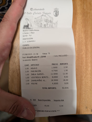 Tema comida, te ponen pan sin pedirlo (y lo cobran obviamente) que encima es la barra más barata del supermercado. Luego pimientos y ventresca de bote, tabla de quesos (que el nombre se lo ponen por venir en la tabla, porque fue sacarlos del envase del Mercadona y ponerlo encima como vieron bien) y unas zamburiñas que si no estaban secas de la plancha, estaban aún sin descongelar. Los postres mejor no los comento porque se intuye la verdad.