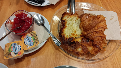 Llevabamos muchas expectativas debido a las buenas reseñas, pero nada que ver, supongo que porque se refieren al anterior local. Entramos y esperamos turno, pero una mujer con una niña que llegó después se nos coló delante. La camarera le cedió la última mesa libre, pero sin recoger aún, del interior. Nos tocó ir a la terraza de atrás. Esperamos un buen rato a que nos atendiesen. Pedimos un americano, un café con leche grande y tostadas. Volvimos a esperar. Cuando llega el desayuno se le pidió un poco más de agua para el americano. La leche del café, fue servida al momento, sin crema, pero eso ya depende de la maña de quién la prepare. Nos trajeron más agua caliente, pero no en jarra, en un vaso de cristal, y al verterla obviamente caía por fuera. El problema más considerable estaba con las tostadas de pan, eran dos partes de abajo de la barra y una de ellas venía manchada de mermelada, y no había tocado la mía pues venía aparte. Vamos, esa tostada era de otra mesa. La mantequilla estaba dura, de la nevera. Además solo pusieron un bizcocho para el americano, el otro café al tener tostadas no pusieron nada, pero eso también será política de la empresa. Por desgracia, la mesa grande que estaba al lado también se estaban quejando del servicio. Sintiéndolo mucho no volveremos, no tiene nada que ver el local donde está ahora con las fotos y reseñas...