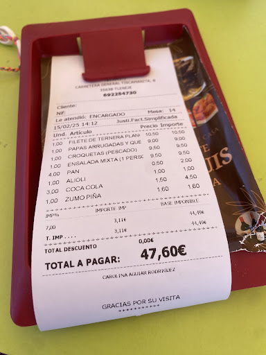 Read moreSeconda visita nel giro di quattro mesi. Se nella prima visita, pranzo in piena estate, ambiente affollato, l'unica lamentale poteva riguardare la lentezza del servizio, ieri sera, 16 novembre, tre tavoli occupati, di fronte al miglioramento della velocità del servizio, è mancata la professionalità e il riguardo della proprietà, verso il cliente. Comanda: papas arrugadas, alioli, queso frito, croquetas de jamon e, fuori menù, croquetas de cabra. Pulpo a la plancha e solomillo de ternera (medio hecho). Una aqua grande, un nestea e dos copa vino tinto. Sei le crocchette di capra, ne sono state mangiate, tre, una per ciascuno, le altre tre bruciate e fredde all'interno, sono rimaste sul tavolo. Alla cameriera è stato fatto presente il motivo e lei lo ha riferito in cucina. La proposta è stata di ripassare in frittura le tre crocchette bruciate, per riscaldarle ... Sorprendente il solomillo: mai visto un filetto di manzo tagliato a fette dello spessore di mezzo centimetro, e, ovviamente, cotto completamente. Vabbè c'è sempre una prima volta. Argomento conto. Croquetas de cabra € 12,00. Mi sarei aspettato, minimo, un dimezzamento dell'importo. La chicca sono gli € 0,75, voce tarrinas, per aver asportato il pulpo avanzato. Non scrivo MAI PIÙ. Ci sarà una terza volta, probabilmente. Per vedere se le recensioni servono. Hasta...