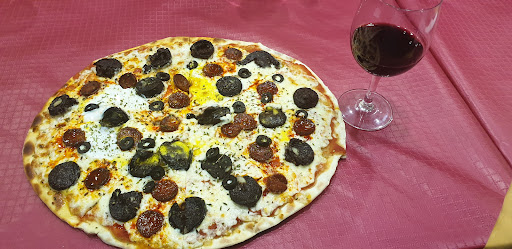 The owner seems only to speak Spanish but were trying to learn so persevered, managed to ask for a menu. He disappeared & reappeared with two menus; one for a 3 course Menu Del Dia at €12 and a separate pizza menu. A few seconds later, after choosing our pizzas by pointing at them and being shown a side door we realised that the (empty apart from us) restaurant was through there! The doors were closed because the other guests were drinking at the outside tables. A charming younger waiter who spoke very good English appeared, asking if we needed the heating on but the room was comfortable for us because it had been a glorious sunny day, only cooling off after darkness had fallen.