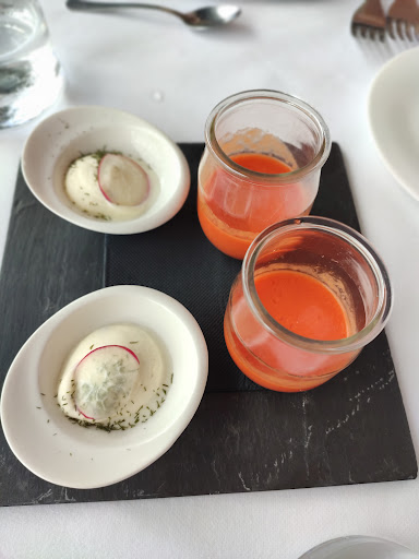 "Tuvimos la oportunidad de visitar este restaurante en un viernes de junio, siendo un grupo de cuatro personas. Nos habían recomendado el lugar y, considerando su estrella Michelin, estábamos emocionados por la experiencia. Desde el momento en que llegamos, quedamos impresionados por la belleza del sitio, con su entrada rodeada de jardines que aportaban tranquilidad y belleza al ambiente.