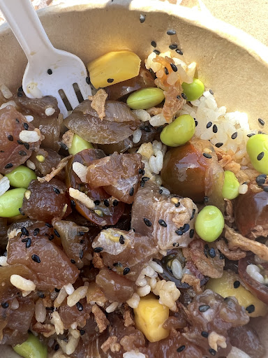 Read moreEl otro día pedí dos pokes porque tenia el recuerdo de que eran excelentes, pero a diferencia de otras veces no quede muy contenta. El arroz estaba un poquito duro, pedí el poke grande y ya veis en las fotos que me faltó arroz, que por cierto no era arroz sushi (que es un puntazo para este tipo de producto). Me molesto que solo te dejaran elegir UNA sola proteína independientemente del tamaño que elijas (a no ser que pagues más) y ya de por si el precio es elevado para ser una ensalada hawaiana. De todos modos es con el único poke con el que me he encontrdo con este punto tan negativo. Yo elegí atún, pero como se ve en las fotos, muchos trozos tenían grasilla que no habían quitado al cortar y al masticarlo se hace bola. Poca cantidad de mango, muy poca. El edamame duro. No sé, resumiendo muy insatisfecha. Para mi gusto han empeorado. Los productos no parecen los mejores y las cantidades han disminuido. Para tener un poke en condiciones tienes que pagar 15€ aproximadamente. Una pena, me gustaban mucho. No volveré en un tiempo, a ver si las cosas vuelven a ser las...