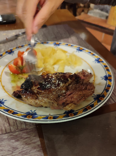 Muy disgustados con la experiencia. Normalmente cuando pides algo de la carta, es lo que quieres comer. Las croquetas y ensalada que hemos pedido estaban ricas, pero el ENTRECOT de ternera, a nuestro entender no lo era ni en forma, ni en gusto (estaba muy dulce), ni en elaboración (tenía trozos de morcilla adheridos). Existe un dicho que dice: "que no te den gato por liebre". En nuestro caso, tal vez debería ser: "que no te den carne de potro, por ternera". Lógicamente hemos protestado, pensando que el plato lo habían traído equivocado, pero decían que "si era entrecot". Hemos decidido irnos y aunque no nos querían cobrar, hemos pagado lo que habíamos comido y...