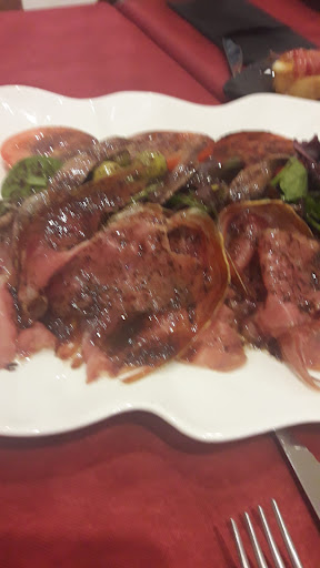 Un lugar sorprendente. Para una localidad pequeña y bastante apartada, ofrece una gran calidad. Comida tres amigos este sábado 18 de noviembre, después de hacer una excursión. Habíamos reservado, cosa que parece muy aconsejable o incluso imprescindible. Comedor agradable, con un servicio muy bueno. Las raciones son generosas y con producto de buena calidad, muy bien tratados. Tomamos (para los tres), una ensalada templada de jamón, una tabla aragonesa de embutidos y queso y una pequeña degustación de tres tapas. Para segundo, regado con una botella de tinto Coto de Hayas (habíamos tomado previamente tres jarras de cerveza), una ración de medallones de solomillo de cerdo, rellenos de queso y dos raciones de bacalao crujiente. Tres coulant de queso para postre (exquisito) y tres cafés. La nota, para tres y esa descripción, fue de 128,80 €. No es barato en absoluto, pero comimos muy bien y muy a gusto, que es...