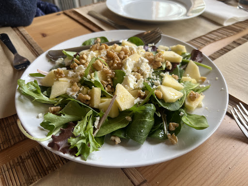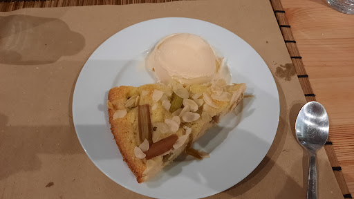 Inmejorable. He comido en pocos sitios en los que sientas que los platos son de verdad saludables. Y no me refiero a la moda de la comida "healthy", llamada así por llevar un poco de verdura, alguna fruta exótica y una cantidad ingente de alimentos poco saludables. No, me refiero a una comida confeccionada con cariño y unos ingredientes sencillos que hacen que se convierta en un verdadero placer. Comenzamos con una torta de queso de la tierra con un sabor que ya quisieran muchos quesos franceses de renombre y fama. Templada, como debe ser. Y para acompañarla una buena ensalada de lechugas, rúcula, queso feta, aguacate y mango, aliñada a la perfección para que los sabores tuvieran entidad. Para continuar un pollo con verduras a la parrilla y cuscús. El pollo tierno y sabroso con esas verduras sencillas (pimientos, champiñones, judías verdes) a la parrilla y ese cuscús con un ligero toque de limón... estupendo. Y unas albóndigas de ternera que estaban exquisitas. Se deshacían en la boca y estaban rellenas de verduras, y con una salsa a base de tomate natural... de toma pan y moja. Como las raciones son justas y ni sobra ni falta, nos decidimos a pedir postre. Una tarta de queso con mermelada y un bizcocho de chocolate con avellanas. La tarta de queso estaba dulce sin empalagar, contrastando con el sabor de una mermelada casera 100% y complementada con una base de galleta crujiente. Deliciosa. Y el bizcocho de chocolate tenía una capa de chocolate caliente por encima, era esponjoso y tenía sorpresa: avellanas molidas y enteras dentro del bizcocho. Un pecado de rico que ya estaba. Y con todo esto no me he sentido pesado ni lleno, lo cual indica unas materias primas excelentes y un modo de aliñar y cocinar de los de toda la...