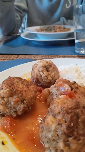 Read moreUn local francamente bonito situado en un patio interior que te traslada a otra época. El problema es la comida en sí. Una carta muy corta, lo cual no necesariamente ha de ser un problema, pero con un elaboración poco cuidada. Los entrantes son escasos y poco variados. Básicamente torta de queso y patés. Como plato principal pedimos unas albóndigas. Escasas e insípidas. Casi todo el plato compuesto por arroz basmati pasado (lo cual tiene su mérito) y pollo al curry. También escaso y acompañado por el mismo arroz. Parece que no conciben otro acompañamiento. Los postres, en cambio, muy ricos. Una tarta de queso y de chocolate muy ricas, salvo el helado de acompañamiento lleno de cristales de hielo (fruto de un proceso de descongelación y nueva congelación). En resumen ; local precioso y buenos postres. El resto; escaso y...