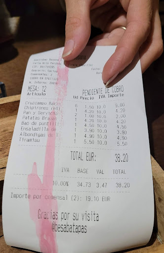 El precio es algo superior a un bar de tapas tradicional, pero sigue siendo bastante ajustado y la calidad sin duda lo merece. Tiene una terracita exterior con mesas altas, pero en un callejón muy agradable. Para no cerrar el paso, las mesas estánpegadas a una pared, lo que no lo hace cómodo para grupos, pero es preferible al interior si el tiempo y el número de comensales lo permite.