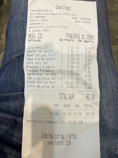 This place is amazing. Cheap, fresh, fast with a great atmosphere, however I have only eaten in the outside section. The goats cheese with caramelized onion ( with or without the solomillo/beef ) is straight up one of the best dishes i have ever had the pleasure of eating. My attempts to recreate it have always fallen short sadly so i return every year with my spanish girlfriend. Everytime we struggle to decide on food its agreed that we should go to Diegos. As an English man I cant attest to its authenticity as great spanish food, but as a human with taste buds I can affirm that it is great food. The price is always less than I expect and even when the place is heaving youll be seated and served with haste. I honestly truely desperatly recomend Diegos. Its undoubtedly where i will end up proposing, as i doubt my girlfriend could refuse any request after such lovely food that leaves us both with a grin from ear to ear...