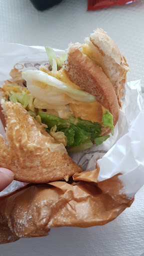 Paramos a comer porque nos pillaba de paso hacia nuestro destino de vacaciones, y no pudimos elegir peor. Para empezar, a la llegada habia una puerta que no abría, tenias que rodear unos metros y entrar por otra, la cual no se veia. Los trabajadores, viéndote llegar, no te indicaban la puerta de entrada, por si no te dabas cuenta con el reflejo en los cristales de que estaba abierto y te ibas, asi no tenerte que atender. Una vez encontrada la puerta de entrada, hicimos el pedido en las máquinas de la entrada y nos sentamos en una de las mesas. Tras media hora de espera y nuestro al no haber ni un solo cliente, me dispongo a preguntarles si habia habido algun problema. La chica me responde que tenia que ir a pagar alli, y le respondo que ya lo habia hecho en la máquina. Entonces me dice que habia borrado el ticket, que la tenia que haber avisado a mi llegada porque no me habia visto llegar (realmente me vió cuando no podia entrar por la puerta al otro lado del cristal y miró para otro lado). Después de otra media hora de espera, se confundieron en una de las hamburguesas al no quitar uno de los ingredientes a los cuales mi pareja era alérgica. Tras indicarselo, nos volvieron a poner la misma hamburguesa sin el ingrediente. Resultado y resumen, no...