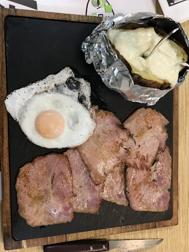 Read moreWil je een typische Spaanse "hamburger-tent" uitproberen, dan is dit zeker "the place to be" (or to try) in Torre. Familiebedrijf bij uitstek, zoals dikwijls in Spanje. Verwacht er echter niet een klassieke burger zoals grote ketens brengen. Neen ... veel eerder (grote) broodjes met verse producten, veel laagjes vlees en kaas ... dat is wat je krijgt. En het smaakt! Wie liever niet zoveel brood eet kan ook kiezen voor vleesschotels die prima zijn. (varkensmedaillons / kippenvleugels). Verwacht ook geen typische "burgersaus". Op de tafels staan een fles (zoete) mosterd en een fles Ketchup. Daarmee moet je het dan wel doen. Wie houdt van een dikke "aardappel in de oven" met saus is wel op het juiste adres! Ook de frietliefhebber trouwens. Een grote portie is voldoende voor 2 à 3 man en wordt geserveerd met mayo, zoals het hoort. Duidelijk minder is de sfeer. Ga je er eten na 21u30u dan is het best je niet te ergeren aan het lawaai. Spanjaarden zijn redelijk luidruchtig en een hamburger is, net zoals overal, denk ik, het favo eten voor kids ... Ik moet verder geen uitleg geven...