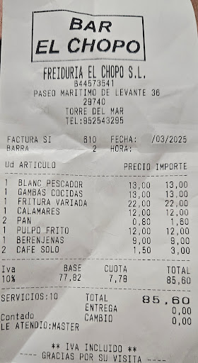 La carta ofrece mucha variedad de comida principalmente pescado como es típico en la zona y a muy buen precio, y mucho mejor que en otros sitios de la zona ya que está muy bueno y el precio no es precisamente muy caro.