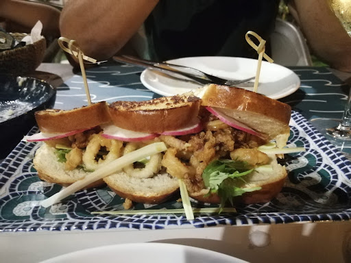 Read moreAnnexe du Chin-chin situé juste à côté, le Descar-t est exceptionnel. Carte ramassée, salle minuscule à laquelle s’ajoute une grande terrasse sans ombre, tout est fait pour magnifier le produit, prendre des risques tout en offrant des plats traditionnels. Ne mentons pas, certains plats n’ont que peu d’intérêt, la salade russe a certes du thon fumée et des piments mais reste une salade russe (à 4.50€ la tapa au moins pour 3, on aurait tort de se plaindre; la salade de tomate reste une salade de tomate non épluchée pas mauvaise mais sans valeur ajoutée. En revanche, dès qu’on écoute les serveurs, on comprend mieux l’engouement. Les influences japonaises sont là (sauce teriyaki pour le pinchito moruno au thon, huile de sésame pour le sandwich de calamar, edamame en accompagnement), les cuissons sont dingues de précision, les portions sont plus que généreuses. Pour rassurer tout le monde, les horaires sont sur Instagram et comme toujours, n’hesitez pas à les appeler, les enfants ont un large choix sauf si vous les nourrisez aux pâtes bolo et nuggets de poulet. Bref, allez-y et...