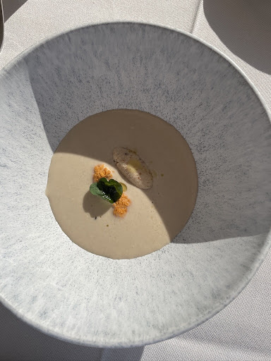 Read more¡Segunda vez que vamos y no última! Si digo que es mi restaurante favorito no miento. La cocina es EXCELENTE, los camareros un encanto (Moha y Ana nos han atendido suuuper bien y son super simpáticos!), el lugar donde está el restaurante es único. Al lado está el campo de golf y de fondo se ve el mar. La música ambiente es estupenda y la brisita que corría hoy en la terraza era estupenda. Hemos ido con nuestro perrito y también podía estar en el salón, cosa que se agradece porque en pocos sitios dejan a perros dentro, nosotros hemos optado por la terraza por disfrutar de las vistas mientras disfrutabamos de la comida, y a nuestro perrito le han ofrecido agua que se agradece muchísimo. La comida? Es que no tiene un pero. Empezamos con el pan de masa madre con el alioli de miel de caña y el aceite sin filtrar. A continuación hemos pedido unas croquetas de plato de los montes (literal sabe a plato de los montes), un ajoblanco de algarroba que estaba riquísimo, una corvina mar y montaña que la otra vez nos encantó y está vez tampoco ha defraudado, una presa con su parmentier trufado que estaba para quitarse el sombrero y para finalizar una Torrija que estaba BUENISIMA, nada pesada ni empalagosa con sorbete de mango, caldito de coco y lima 😍 y un cafelito al cual me han invitado y se agradece muchísimo y también estaba muy rico. Precios super acordes a la calidad y cantidad perfecta! Además hemos descubierto un ribera muy rico que hemos añadido a la lista de nuestros vinos TOP. Enhorabuena equipo por hacer tan buena una velada en pareja, vuestra cocina y servicio es increíble. Invito a todo el mundo a probar...