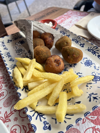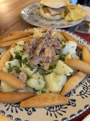 Read moreTeníamos muchas ganas de venir y hinca habíamos podido porque desde que abrió siempre está lleno, por eso pasamos por aquí un día temprano tipo 20h y tuvimos suerte. Y ahora entiendo por qué, comida de 10, típica de tabanco gaditano con toque veleño. Nosotros pno dimos prensadito de lomo de roza y cebolla caramelizada, hamburguesita de buey, papas aliñás y surtido de croquetas que estaban de muerte! Precio de lujo, ambiente perfecto y lo que hace también único un lugar es la gente, por lo que tengo que decir que las camareras Johelin y María del Mar nos atendieron de lujo, rápidas, amables y atentas. Para repetir todas...