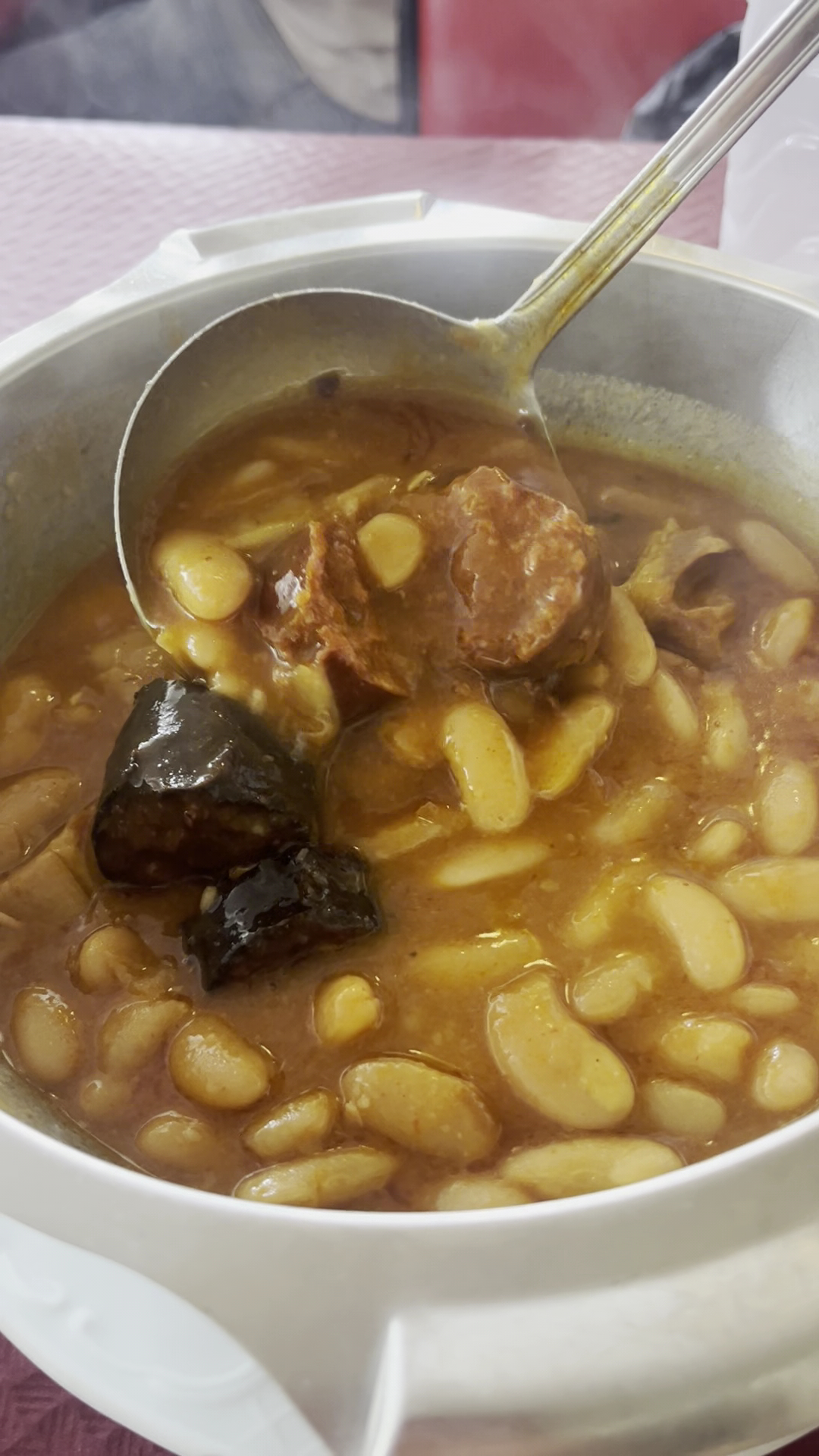 Tuve que ver como el comensal de al lado se servía dos platos colmados de fabes y como se las comía como si no hubiera un mañana, porque con la fabada no hay escasez en el Marisol. Si tienes la suerte de que te la ofrezcan, claro.