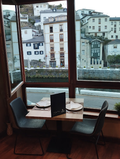 🌁 El sitio se encuentra en una buena zona de Luarca muy cerca del puente del beso. Cuenta con una salita que hace de restaurante (con ventanas grandes y puertas de madera) y otra parte con mesas cercanas a la barra dónde normalmente puedes tomar algo. También cuenta con un primer piso con vistas al río. El local es mediano / grande para la zona y acoge bastantes comensales.