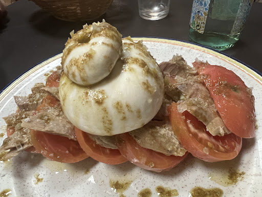 Read moreEl local es muy bonito, muy cuidado. Respecto a la comida: la racion de tomate con ventresca, espectacular y generosa. Las croquetas hiper buenas, mención especial a la de chipirones. Las patatas bravas fue lo único que flojeó, por la cantidad (más bien escasa) y la salsa, poco picante para mi gusto. Las patatas también algo pequeñas. La tarta de caramelo nos gusto mucho. La camarera, maja pero con ciertas confianzas que sinceramente no me gustó, unas contestaciones un tanto extrañas. Y lo que menos nos gusto fue que pudiéramos chuletón, que no nos recomendó ya que por la noche "en general la gente no come carne, y para un chuletón tendrían que encender las brasas y sería un gasto innecesario". Un feo la verdad. Por estos dos motivos no le doy las...