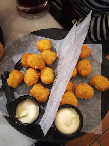 Vergüenza debería darles. Pedimos dos raciones de pops de queso y dos de pops de pollo, dos montaditos veganos y dos raciones de aceitunas. Inició bien hasta que vi la cara de mi amiga casi pálida, el montadito era de CARNE, angustiada fue a reclamarlo y aún con un refunfuño la cocinera lo cambio por otro QUE ERA EL MISMO, DOS MONTADITOS DE CARNE para una chica vegetariana y cuidado porque cuando lo reclamamos la mujer nos miró con mala cara. Los pops de pollo desaparecieron, nunca nos llegaron y cuando también fuimos a reclamarlo nos miraron igual de mal y la camarera nos puso los ojos en blanco, la ración de "pollo" que nos dieron eran la mitad de queso. Las aceitunas parecen ser omnipresentes porque no nos las dieron tampoco y cuando las pedimos nos dió UNA SOLA RACIÓN. Un poco de porfavor que solo es leer un recibo y ver que decían 2 raciones de aceitunas.