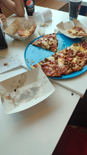 Read moreHemos venido hoy lunes 26 de julio a comer, te preguntan que deseas y cuando pides te dicen que solo les queda masa fina, lo piensas y aceptas (qué remedio), te dan los vasos y te cobran cuatro "comer y beber". Cuando vas a beber no salen hielos, te dicen que su máquina ha dejado de hacer hielos y nos echan uno por vaso de forma manual. Cuando echas la bebida resulta que sale sin nada de gas, se lo comentamos y nos dicen que le van a dar un vistazo a la máquina, nadie nos comenta nada pero a los 20 minutos volvemos a rellenar y lo volvemos a comentar y nos dicen que está todo bien y que sale el gas que tiene que salir, bien pues la bebida sale sin ningún gas y de verdad que la Pepsi sin gas y con un solo hielo que te la enfría es hasta desagradable. Cuando hemos pedido los cartoncillos para coger las porciones, adivina!!!! Tampoco les quedan y nos dan unas cajitas de cartón para, no sé de qué manera, las utilicemos a modo cartoncillo (envío una foto). Es alucinante, no tienen de nada, está claro que no volveremos y está claro que no lo recomiendo en absoluto. No tienen de nada y encima, parece que les da bastante igual todo y, dudo mucho que nadie revisara nada porque estábamos al lado de la máquina y nadie de ellos pasó por alli a mirar nada, de vergüenza,...