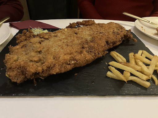 Read moreFuimos porque nos lo recomendaron unos amigos y fue bastante decepcionante. Entramos y nos metieron en un reservado bastante agobiante, ya no por pequeño sino porque tenían almacenadas ahí las tronas y nosotros éramos un grupo numeroso. Pedimos de entrantes unas croquetas de chosco por un diploma de las mejores croquetas de Valdemoro, una ensalada y chorizo a la sidra. Las croquetas salieron rápidas y estaban muy ricas, la ensalada también. Hasta ahí todo bien, tras más de 25 minutos de espera no llegaba el chorizo a la sidra y llegó 1 de los cachopos, pedimos 4, 1 por pareja. Con lo que le dijimos a la camarera que por favor no nos trajese ya el chorizo. 15 minutos después nos trajo otro, totalmente crudo el picadillo por dentro( sabía a chorizo, no a picadillo). 5 minutos después llegó otro, tras otros 5 el otro y 10 minutos después unos escalopines que había pedido un comensal. La carne estaba tierna pero el queso de dentro de los cachopos estaba entero, y ya he comentado que la carne no estaba en su punto. Es una verdadera pena porque las cantidades son generosas y el género no parece malo pero la elaboración es muy floja. La camarera no pasaba a ver si todo bien y pasamos más de media comida sin poder pedir bebidas y cuando aparecía era porque traía el cachopo de turno, mientras hablaba y se iba sin dejarte opción a pedirle algo. Pedimos por fin los postres y bebidas, resulta que hay dos formas de pedir el arroz con leche, y cuando le dijimos que lo queríamos gratinado nos dice que se lo tendríamos que haber dicho antes. Perdón, pero si no nos das opción no sabemos cómo vas a traerlo. Cuando pedimos la cuenta, no ofreció ni un chupito.. en una mesa de más de 200€ a la carta. Y en la cuenta estaba incluido el chorizo a la sidra que nunca llegó, pero rectificó de inmediato. Una pena,...