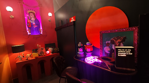 Estábamos pasando una noche en Valdepeñas y buscamos un restaurante un poco diferente así que reservamos en este local. Cuando entramos por la puerta, nos saludó Álvaro, el propietario y showman del establecimiento y nos recomendó unos cócteles que estaban deliciosos. Pasaron unos minutos observando el local, que está adornado como el ático de un loco que tuviera un gusto exquisito en ordenar toda una vida de propiedades. O eso parecía, porque si te pones en el mood adecuado y analizas lo que hay, tiene sentido y cuenta una historia.