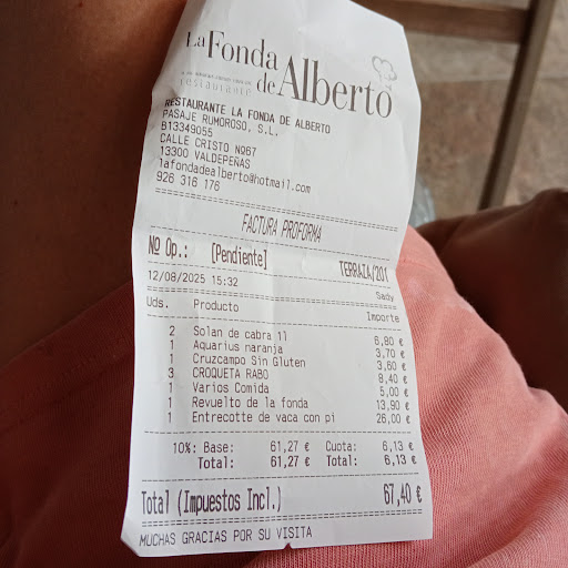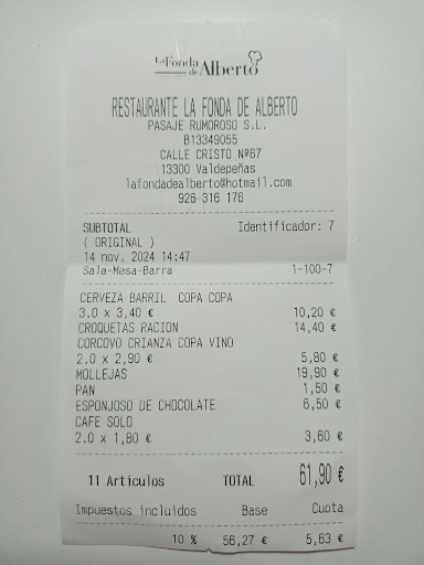 Por otro lado, Jesús, si nos has servido 3 cervezas y 2 tintos, y solo nos has puesto las dos primeras tapas, y te pido 2 rebanaditas de pan para acompañar las mollejas, ten la delicadeza de no cobrarlas a parte, ya que te has ahorrado el servicio de 3 tapas que normalmente las servís con pan. Y, por favor, intenta ser más generoso a la hora de servir el vino. Me pedí dos tintos Corcovo crianza (la botella cuesta unos 4 € en la bodega) y parecía que me estabas sirviendo Vega Sicilia.