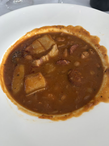 Read moreEra domingo y había gente, pero tardaron en sentarme como 10-15 minutos. Al sentarme, mínimo 5 minutos en traerme la carta. Después de pedir, me traen la sopa de picadillo, que estaba bastante bien, pero no me traen pan y tengo que pedírselo a una camarera, que me dice que sí, pero no me lo trae. A los 5 minutos vuelvo a pedirlo y me lo trae al momento, ya que la cesta estaba a metro y medio de mi mesa. Total, que al poco tiempo me traen una ensalada y me dicen que es el aperitivo, que hay mucho lío en la cocina (previamente había dicho que no me la trajesen, que no quería ensalada). Ya con el segundo, un codillo, [del que había preguntado si llevaba patatas y me dijeron simplemente que sí (las esperaba fritas y eran estilo panadera)] que venía como con salsa de tomate y verduras, del que el 70% era hueso y piel y 30% carne, siendo generoso. No me convenció. Total, que si vuelve a coincidir el hambre con el kilómetro 186, me esperaré al siguiente o pararé antes, lo más seguro. Aunque viendo las valoraciones puede que les dé otra oportunidad, por si...