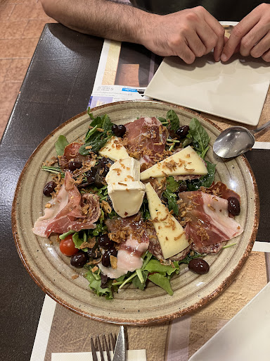 After spotting this beautiful restaurant a month ago I've wanted to return ever since. I wanted to love it so badly. Especially as the staff were so friendly and pleasant and welcoming. They seem like genuinely lovely people. But I was so shocked and disappointed by the food and also the cleanliness (or lack of) of the bathrooms. €13 for a bag of dry and undressed salad thrown onto a plate, with a few whole cherry tomatoes, and two slices of smoked salmon, just not good. The papas bravas were alright - it's hard to get them wrong really isn't it. The meat we had with mushroom sauce was V E R Y dry, and gave the suspicion of 'reheated' :( I can't understand the disconnect between what we experienced and the glowing reviews. But I'm hoping it was just a bad day and we picked the wrong dishes. Storing the bread right next to the men's bathroom, and a half cut baguette with flies around on the surface again next to the men's bathroom is disastrous and I pray what we ate came from a cleaner...