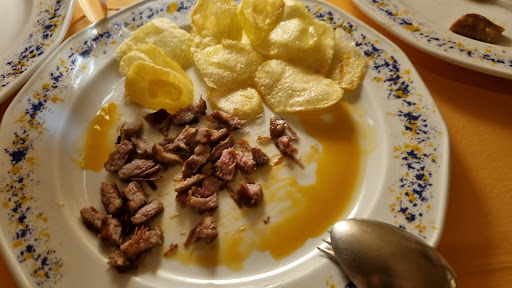 Read moreEl restaurante está dentro de la cueva, tiene también terraza, para el aperitivo. Los platos son contundentes y la comida de es de calidad. La casa nos invitó a una crema de calabacín con migas de chorizo que estaban de escándalo. La carta es amplia, tienen tanto carné como pescado. La ensalada mixta nada fuera de lo normal, pero destacaría, las alcachofas a la plancha con aceite de oliva y ajo, y las ancas de ranas. La carne es de muy buena calidad, recomendable el solomillo de vaca con crema de ajos. No puedes dejar de probar los postres,que además de ser caseros están de rechupete. El mouse de chocolate, el de limón, los helados caseros de Violeta, ,toffee o chocolate blanco, la tarta de queso y el postre de frutas ácidas. La atención en mesa es bastante buena, distante, pero respetuosa y con educación. El precio medio por comensal entorno a los 32 € El café es de puchero, suave, no tienen café expreso. Se puede aparcar sin dificultad. No tiene wifi ni cobertura dentro...