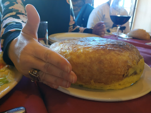 Read moreEl bar muy acogedor, con una chimenea que mantenía del lugar calentito, el comedor con otra gran chimenea, muy bonito y con espacio entre las mesas, que se agradece, se está muy cómodo. El principal reclamo de este restaurante son sus tortillas de patatas, y tengo que decir que no me defraudaron. Enorme, comimos cuatro adultos y tres niños, los adultos repetimos, y nos sobró algo menos de la mitad para casa. Cuajada en su punto, calentita, y con patatas fritas, que vi alguna foto que me hacían dudar de su serían con patata cocida. Estaba buenísima. Igual digo, que pedimos una ración de torreznos y no valían para nada, ni en cantidad, una mini ración, y que era panceta muy finita y frita, no eran torreznos, al menos los que yo había comido por la zona de Ávila. Hay que reservar tanto mesa como la tortilla. También probamos la serradura de postre y no me gustó mucho, demasiado dulce y le faltaba consistencia. La mousse de mango tampoco para repetir, parecía más bien un puré y también demasiado dulce. Por supuesto estoy deseando repetir para probar otra variedad de tortilla, las hay clásica, de verdura y...