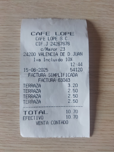 Le doy una estrella porque no se puede dar ninguna. Carísimo, servicio desagradable, mesas sucias, café intragable. Desayuno en terraza, llegamos y la mesa está sucio, pasamos una servilletita de papel y la dejamos visible. Llega el camarero y sin dar palabra nos toma la comanda. Trae la comanda y con un par de dedos, aparta la servilleta para posar las cosas, no limpia la mesa. Tomamos dos tostadas con jamón, un colacao, un café con leche que por supuesto no me tomé y una botella de agua 15 euritos de nada, en Valencia de Don Juan, no en la Castellana de Madrid. Esa es mi experiencia, desagradable y por supuesto...