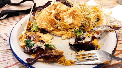 Read moreI came here with big expectations, but... Let's start with - ordering was complicated and after awaiting some time - some drinks did not arrive. Regarding food, I did order a chickpea burger. First thing - It was not a burger, but some mud with a taste of chickpea, not coming to anything similar like falafel or whatsoever. Anyway, with the first bite - the sandwich just collapsed as you can see in the photo. I tried to eat it with cutlery, but everything was too soft to stab it with the fork and slice with the knife. I failed. The plate became a mess, difficult to manage and out of control. Resigned, i reminded staff about my missing drink, paid and left.