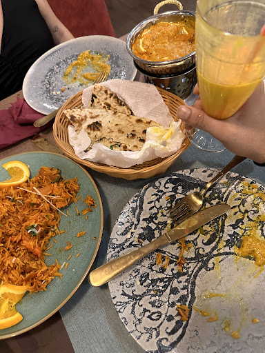 Probamos el curry de cordero, el pollo al curry con mantequilla y el naan de queso con ajo, y cada bocado estaba lleno de un sabor auténtico y audaz. El naan era suave, fresco y adictivo. También tuvimos arroz con limón, que era ligero, fragante y el complemento perfecto para los ricos curries.