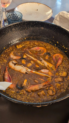 Read moreWe drove up from south to visit the area and to have paella . At first we wasn't that welcomed in one bar close by. As we drove towards the large car park of Arroceria El Rek the car park was quite full but we managed to fine a space. We hadn't booked either (recommended) and luckily the lovely lady found us a table inside as it was quite hot outside. We ordered our food with the help of the staff, first course we had potato bravas that were excellent and plenty for the three of us. Next I asked if they had garlic prawns and what was served was a dozen fresh large prawns and a potato and leak cake, the dish was superb. Next up was the foi gras and duck breast with wild mushrooms paella. It took approximately one hr to serve but the wait was most definitely worth it. The food all well worth it, the staff very pleasent and helpful. We ate inside but would have loved to be served outside next to the water. I'd definitely go back if in the area. The cost was 102 euro which included a glass of red a beer water ( paella 22 euro...