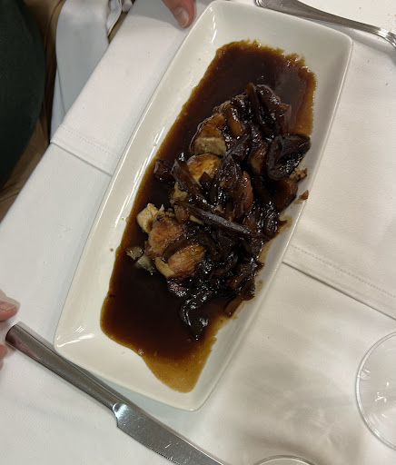 The kind of place Spaniards who love to eat traditional Castillian dishes gravitate too...This was our first roasted piglet and it did not disappoint... The crunch of the skin , the moist meat perfectly cooked , the juice in the clay dish ready to spoon over the house potatoes ... delicious ! Good wine for 25 Euros and a massive salad , croquettes and grilled vegetables.. and one of the best cheese cakes I've ever eaten... wonderful.. Excellent service from Enrique and Robinson to top it all off. What more can you ask for.... Second visit: greeted like an old friend : outstanding grilled lamb chops rich plate of Red beans from Burgos .. a beautiful stuffed artichoke and a generous, fresh salad. The house red wine , made by the owners drinks beautifully with the grilled meat. Service once again outstanding.. Asador is quickly becoming my favorite restaurant...