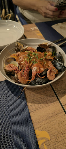 El siguiente plato que pedimos fue la pasta fruto di mare. 18€ altamente decepcionante. El mare estaba suelto y la parte sabía a tomate y perejil, se lo comentamos al camarero y comento que preparaban la salsa con pescado pero de verdad que cuesta muchísimo creer eso. Muy simplón y eso que se supone que es su especialidad.