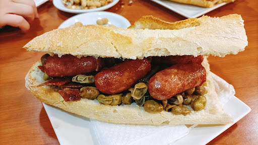 Read moreUn bar de los de siempre. Conveniente reservar para almorzar. Local con buen espacio entre mesas. El servicio es correcto. No se hacen de rogar (al menos miércoles a las 9:30). Disponen de vitrina para hacer el bocadillo a tu gusto. Toman bebida y te preguntan si oliva chafada o especiadas, y si además quieres pebrot. Solemos pedir 2 bocadillos y compartir. Hay dos tamaños. El normal (como media barra), y el entero (barra de pan entera). Nos envalentonados y vamos a por la barra entera. El pan, muy bueno. Que hablar de la mezcla... Pedimos tortilla de patata con loganiza y chorizo. Buen embutido y la tortilla, conseguida. Y uno grande también, de carne de caballo, ajos tiernos, patatas y huevo. La carne ESPECTACULAR. Al final, nos sobró medio bocadillo a cada uno. Con el de tamaño normal, se va sobrado, si no es que te gusta engullir. Pides papel de plata, y directo para la merienda. Pedimos bombón de café, y uno de ellos tocado. Precio total, 23€. Sitio para repetir, sin...