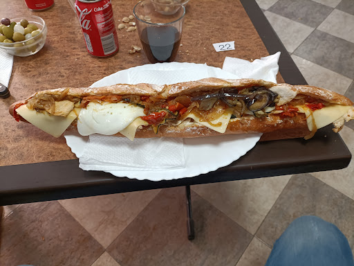 Read moreHemos venido con unos amigos que ya habían venido alguna vez y la verdad es que no ha decepcionado. Si buscas un Almuerzo típico Valenciano y luego no querer comer, aquí es tu sitio. A pesar del olor a frito al entrar que te hecha un poco para atrás, tienen 3 tamaños de bocadillo,(pepito, medio y entero) cualquier tamaño te quedas saciado ya que las cantidades son exageradas, van bien cargados como veréis en las fotos. Te puedes poner tantas veces como quieras cacahuetes y aceitunas con cebollitas y pepinillos en vinagre "samorra" para los valencianos😜, tienen una barra de cristal para poder elegir los ingredientes tantos como quieras(lomo adobado,ternera,pechuga,lomo de cerdo, huevo frito, bacon,queso,pimientos, cebolla pochada, berenjena a la plancha, calabacín a la plancha, 5o 6 tipos de tortillas, longanizas, calamares,chipirones, patatas.... Y muchos más),te dan un número como si fuera una papeleta y la bebida que quieres y luego sólo toca esperar a que como en la tómbola te griten tú número y a disfrutar. El pan un ingrediente crucial para los bocadillos, estaba crujiente y doradito, era largo y no muy ancho lo que permitía dislocar la mandíbula para pegar el bocado🤣, ya que había tanta cantidad en el bocadillo entero que no sé cerraba. Finalmente un bocadillo entero con pechuga de pollo, bacon, queso, pimiento rojo, berenjena, cebolla pochada, calabacín,huevo frito y mayonesa + Cocacola y café más los cacahuetes y aceitunas a granel por 9'80€por persona y ya sales comido. Sin duda volveré por precio, cantidad y calidad de todos los ingredientes. El servicio fue un poco deficiente por la cantidad de gente, pero...