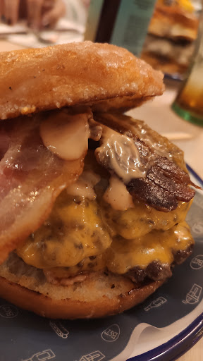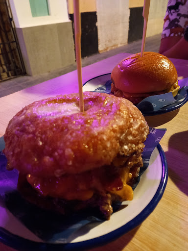 🫷🏽Mi visita no terminó aquí, venia con hambre y pedi la BONUT Original: 🍔Cheeseburger, Cheddar y salsa burger en un PAN DE DONUT ARTESANAL GLASEADO y con bacon crujiente. Nada mal, no? Pues la pedí con 3 carnes. 😜 (18€)