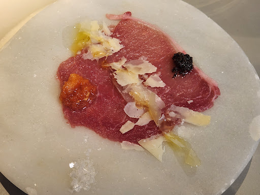 My Main course was brought to me before i had even finished my starter. So felt rather rushed. To crown it all, the main was luke warm. I am a big fan of Spanish beef, and love meat generally. This was a real disappointment. I chose the beef rib, which was braised. It melted in the mouth, but that's as far as positives can go. No seasoning, and the sauce/jus/gravy (whatever one wants to call it), was tasteless... had what appeared to be herbs... but it all felt rather watered down. Vegetables/garnishing... no effort was made here, leaving it off the dish altogether would have had the same effect.