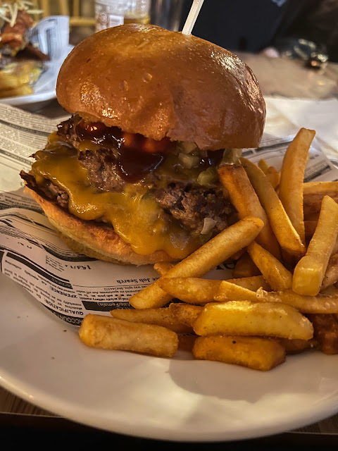 Este fin de semana fui por segunda vez a esta hamburguesería. La primera vez me encantó, tardaron bastante con el servicio pero estaba muy muy rico, y eso lo compensa, además la chica que nos atendió fue muy amable. Éramos una mesa grande, sin reserva y se portaron genial. Debido a mi buena experiencia decidí celebrar mi cumple, así que reservé (13 personas) con una antelación de unos 4 días. Pregunté si dentro se estaba fresquito, ya que estaba haciendo un calor de locos. Me respondieron que sí, que había aire acondicionado y se estaba muy bien, así que reservé dentro. La verdad es que hacía bastante calor, no se si el aire estaba roto pero se estaba bastante mejor en la calle, ya que ese día había refrescado. La segunda decepción es que no tenían hamburguesas vegetarianas (yo y otra amiga no comemos carne). Esa semana no les habían llevado el pedido o algo así. Pienso que habría estado bien avisar, ya que siendo mi cumple, sinceramente si lo hubiera sabido habría reservado en otro sitio. Total, que en cocina nos improvisaron una hamburguesa con frijoles y queso. Estaba correcta, pero obvio no era a lo que iba. Lo que más me molestó es que dentro tenían la tele puesta con reggateon súper alto y no se podía ni hablar, y entre el calor eso parecía una discoteca. Aclaro que dentro solo estábamos nosotros, y otra mesa pequeña. Pedí que bajaran el volumen. Lo bajaron un poco pero seguía sin poder escuchar a mis amigos ni mantener una conversación. Como estaban tardando mucho en servir la comida, y vi que en la terraza habia mucho sitio, pregunté al camarero si podíamos hacer un cambio. Soy consciente de que es un poco jaleo porque éramos bastantes, pero aun no había nada servido y solo había que juntar un par de mesas vacías. Me dijeron que no era posible, así que cené mi hamburguesa de queso y frijoles escuchando reggateon super alto y con un calor nada agradable. Después nos dejaron salir a la terraza a tomar una copa.