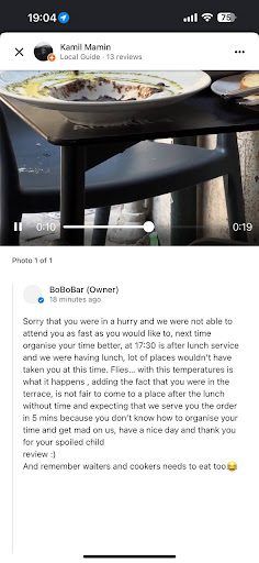 My boyfriend left an honest review with a video as proof. Instead of taking responsibility, they responded with shocking rudeness - changing their reply and calling us “rude,” “spoiled,” and even stupid.
