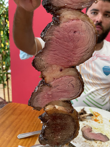 We have been with friends to have a barbecue rodízio. Entrance and service was good there are rice, black bins salad farofa russian salad, and fries potato and bread.