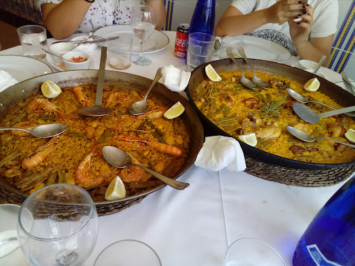 The reviews on this restaurant are pretty correct. We had the short older man in the pic. He doesn't smile and hit us with the "you have to have the same Paella" so we couldn't order our own. The food was very good but it was clear that this is a tourist trap (not this restaurant but the whole town). Any time I am in a town where 800 people live and there are 300 restaurants you know you are in a food trap. The Paella is good so I was happy with the food and the overall value (5 stars) but the people seems burnt on the constant churn of new faces. Has to be tough. The Bravas were good. The clams were different and good too. Interesting day trip from...